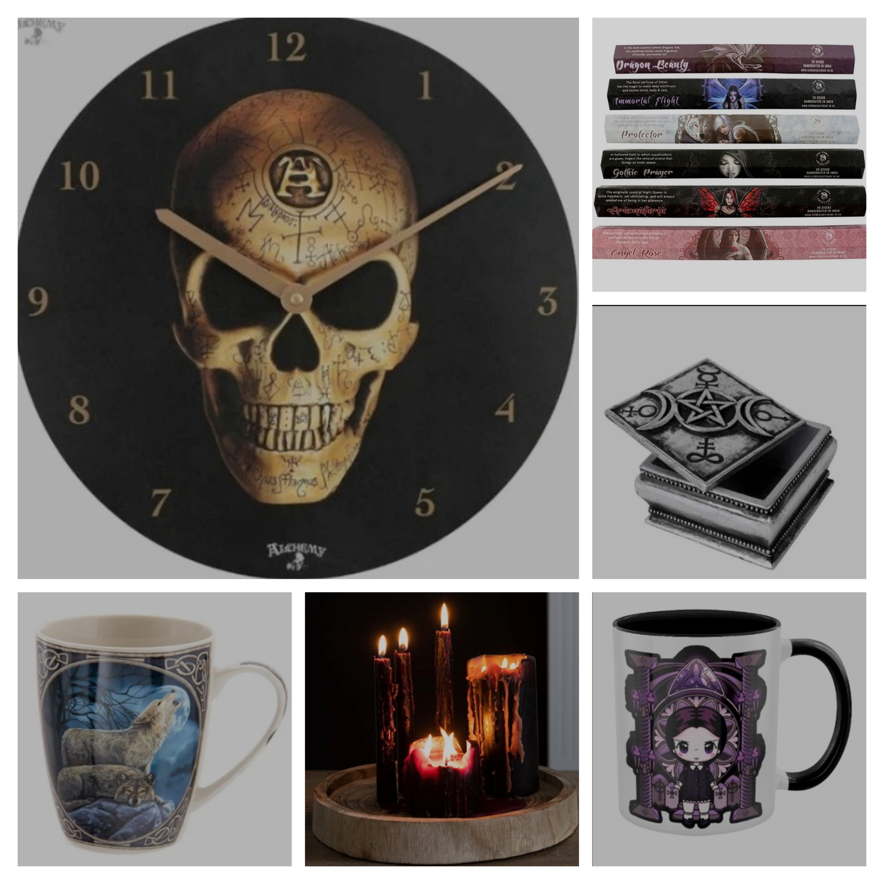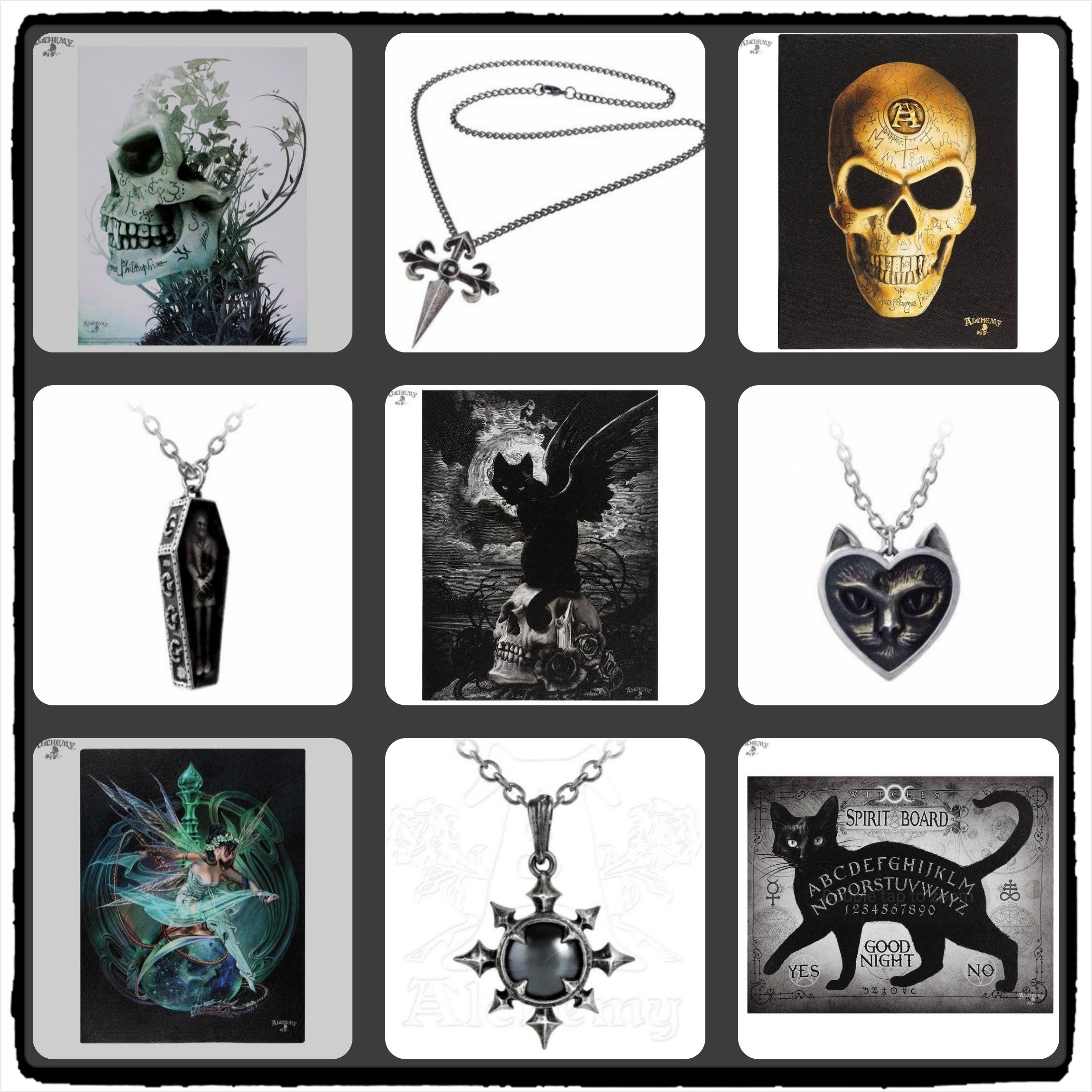 Shop nowA varied selection of things you might become obsessed about. A lot of skulls, Baphomets, gargoyles, fairies, dragons, crosses - you get the idea!
