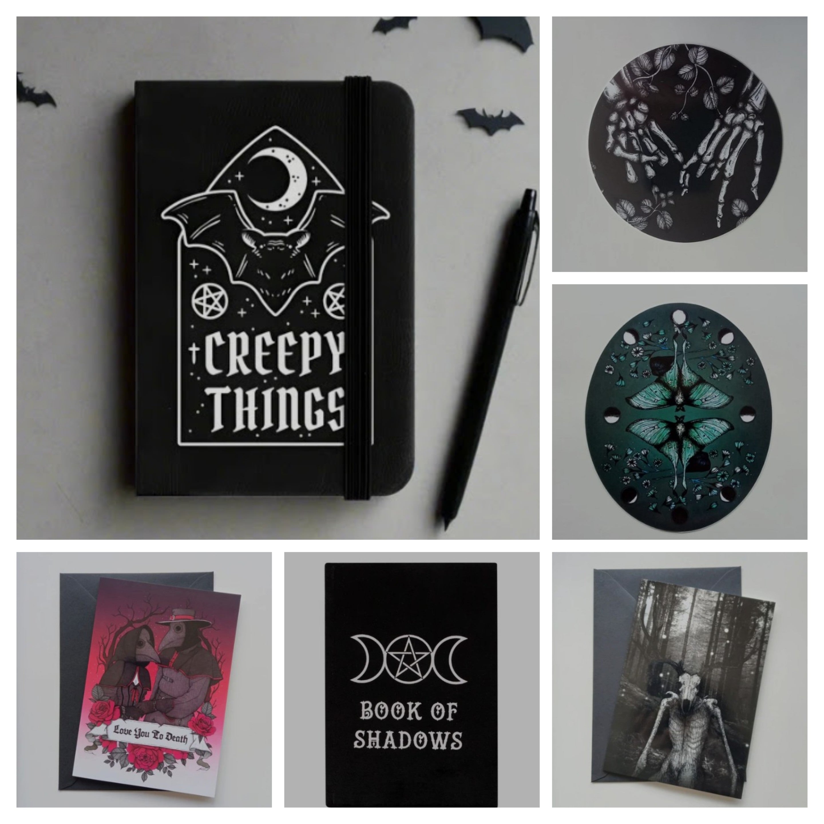 Shop nowThis section covers notebooks, pens, pencils, pencil cases, stickers - you get the idea. All with an alternative theme to satisfy your dark little hearts.